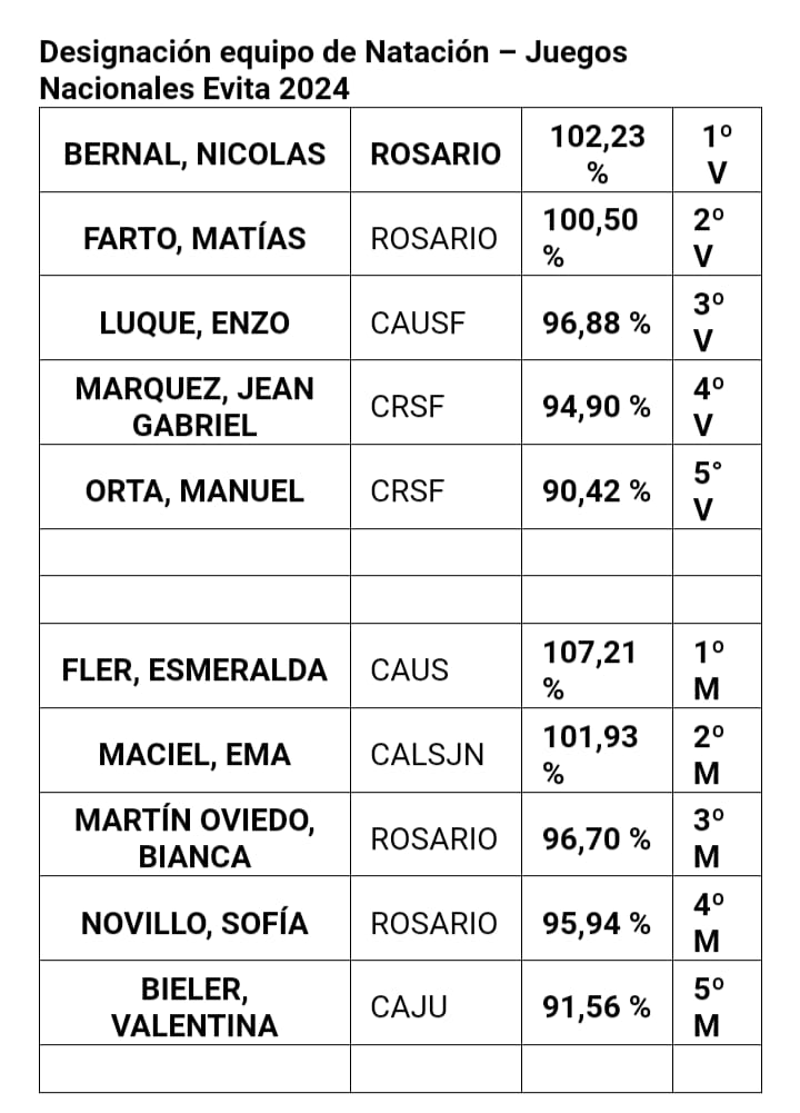 Esmeralda Fler, nadadora de Unión de Sunchales, fue seleccionada para integrar el equipo de la provincia que competirá en los Juegos Nacionales Evita a realizarse en Mar del Plata, del 4 al 9 de noviembre.
