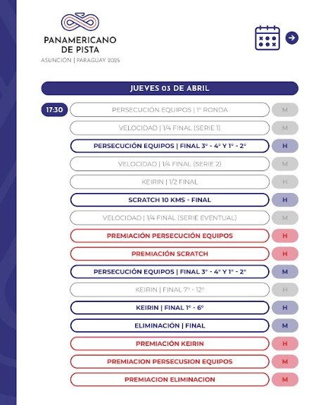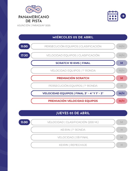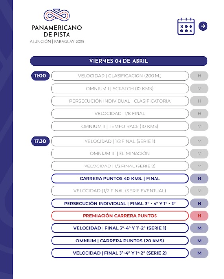 Desde el 2 hasta el 6 de abril se realizará en el Velódromo Olímpico Nacional de Asunción del Paraguay el Campeonato Panamericano de Ciclismo 2025, evento organizado por Comité Organizador Local de los Juegos Panamericanos Junior ASU2025 y la Federación Paraguaya de Ciclismo (FPC).