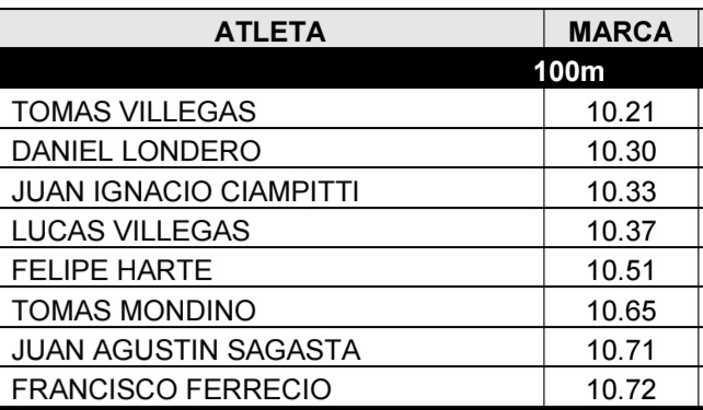 en cada prueba de carreras y 6 atletas cada prueba de campo), y en forma conjunta las pruebas de los atletas del COPAR.