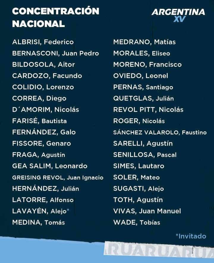 La convocatoria es pensando en los compromisos internacionales del mes de noviembre, acotando la presencia de jugadores que viene de hacer su debut en los Pumas, como Nicolás D’Amorim, Santiago Pernas, Nicolás Roger y Faustino Sánchez Valarolo.
