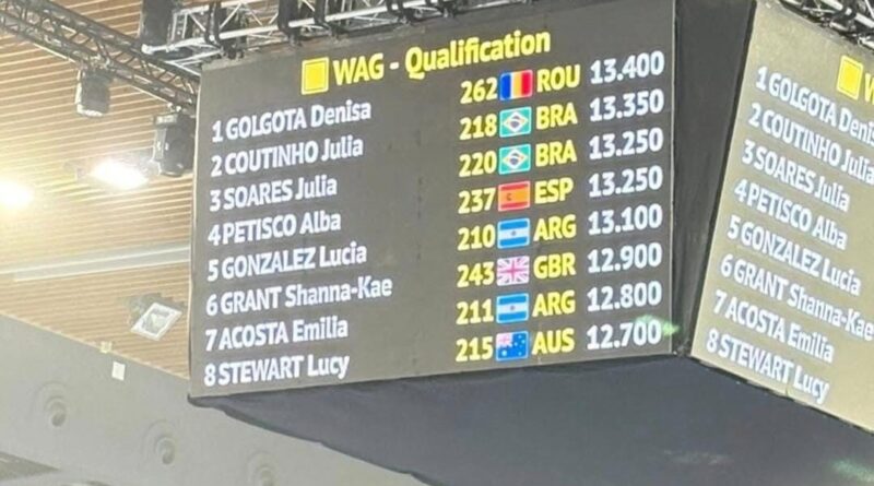 Las gimnastas de CREAR Club entrenadas por Víctor Ingaramo lograron la clasificación a la final de Suelo, al ubicarse entre las ocho mejores. Luci quedó quinta con un puntaje de 13.100, mientras que Emilia fue séptima con 12.800. La rumana Denisa Golgota lideró el puntaje con 13.400.