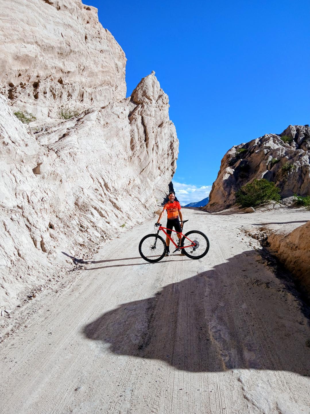 Y cuando todo parecía resuelto, la llegada a Chilecito ofreció un último desafío: tormenta, viento de frente que impedía avanzar aun en bajada y la transmisión de la bicicleta que fallaba, cuando nunca lo hizo. Recién al bajar de la bicicleta para la foto final apareció la verdad: la rueda trasera se estaba saliendo. El cansancio había sido tal que el desperfecto pasó desapercibido… como si la bici misma sintiera que ya era hora de terminar la aventura.